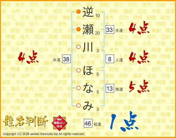 逆瀬川ほなみさんの総運は46画の1点!