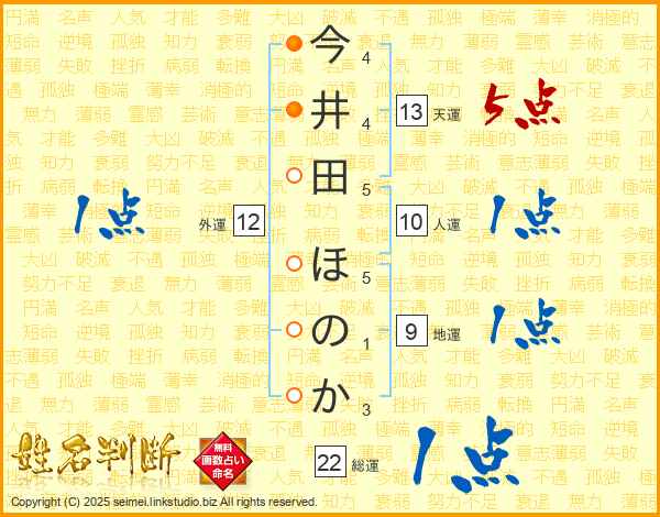 今(4画)井(4画)田(5画) ほ(5画)の(1画)か(3画)