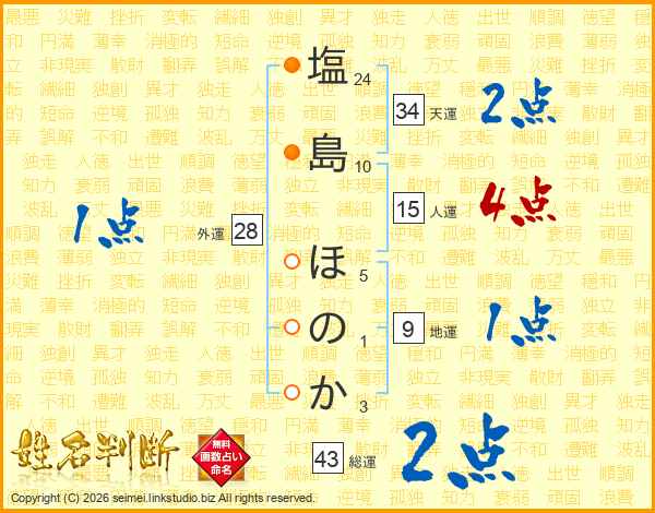 塩島ほのかさんの総運は43画の2点!