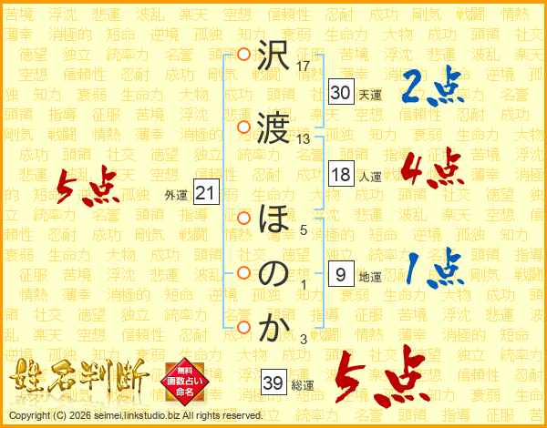 沢渡ほのかさんの総運は39画の5点!