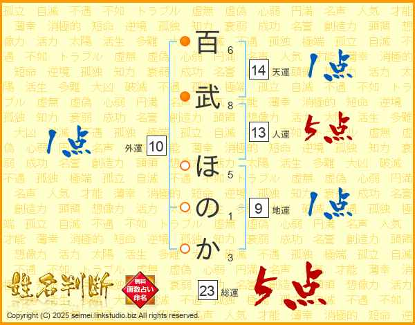 百(6画)武(8画) ほ(5画)の(1画)か(3画)
