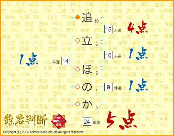 追立ほのかさんの総運は24画の5点!
