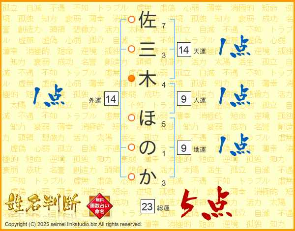 佐三木ほのかさんの総運は23画の5点!