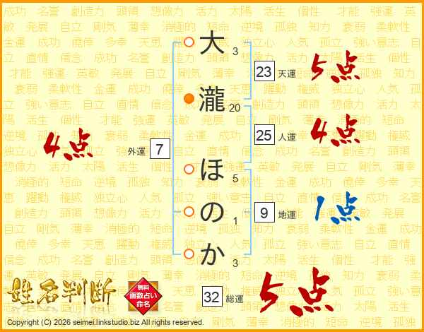 大瀧ほのかさんの総運は32画の5点!