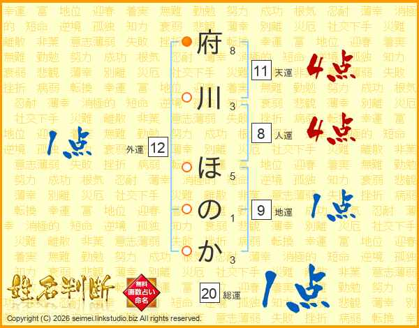 府川ほのかさんの天運は11画の4点!