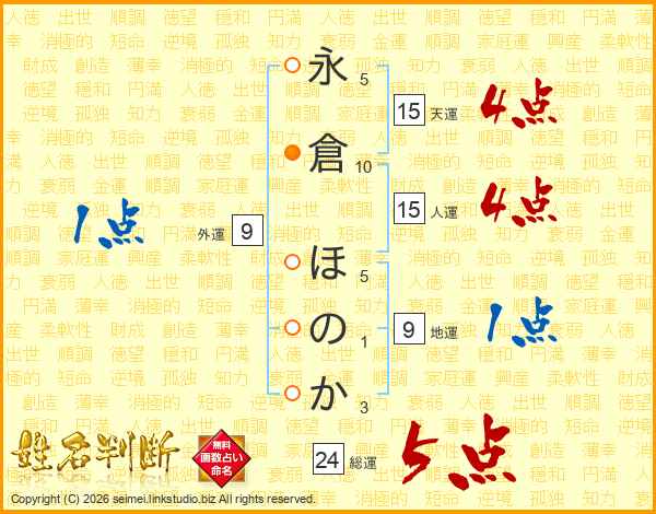 永倉ほのかさんの天運は15画の4点!