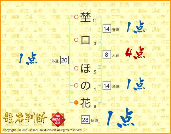 埜口ほの花さんの総運は28画の1点!