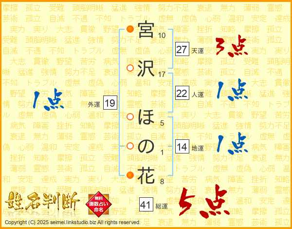 宮沢ほの花さんの総運は41画の5点!