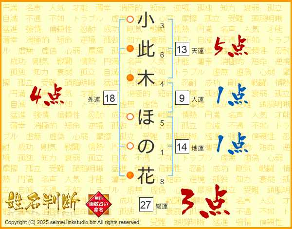 小此木ほの花さんの天運は13画の5点!