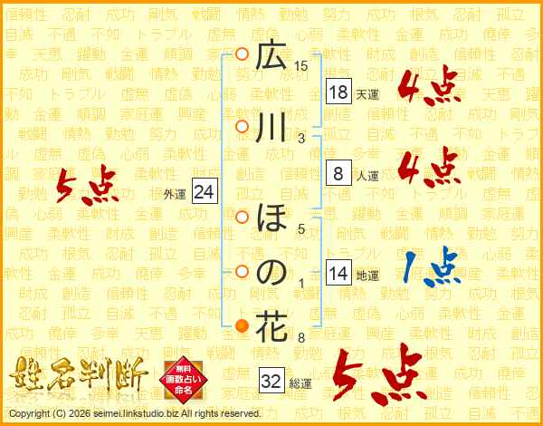広川ほの花さんの総運は32画の5点!