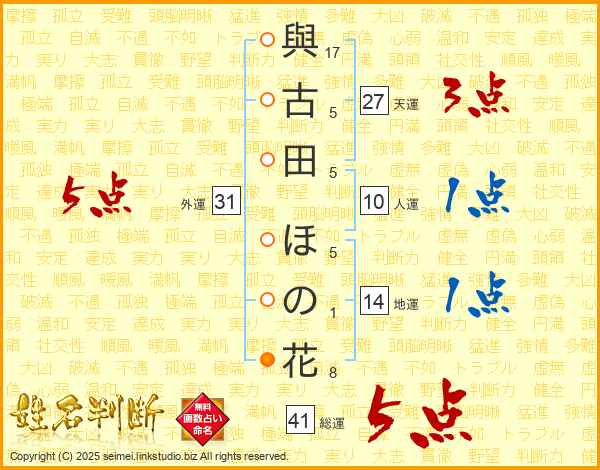 與古田ほの花さんの外運は31画の5点!