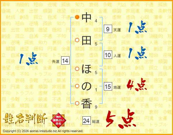 中田ほの香さんの総運は24画の5点!