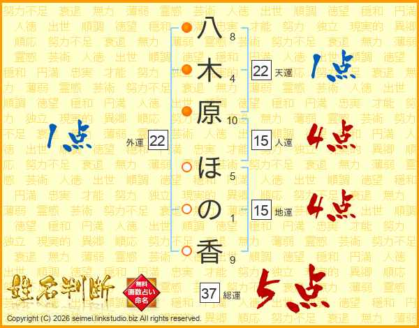 八木原ほの香さんの総運は37画の5点!