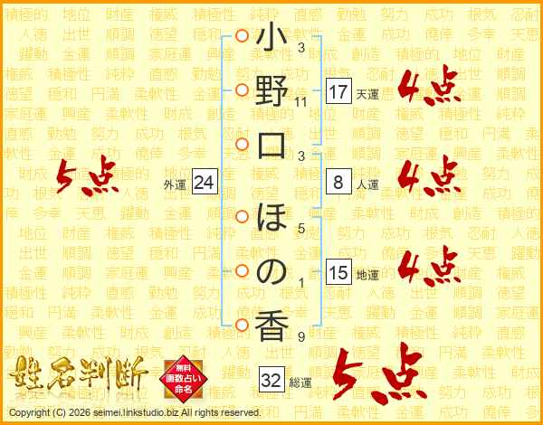 小野口ほの香さんの総運は32画の5点!