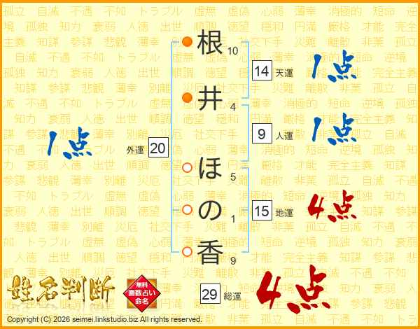 根井ほの香さんの総運は29画の4点!
