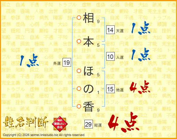 相本ほの香さんの総運は29画の4点!