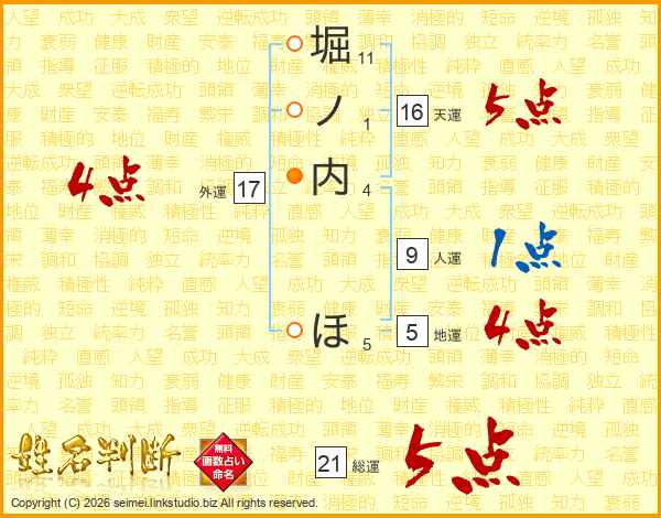堀(11画)ノ(1画)内(4画) ほ(5画)