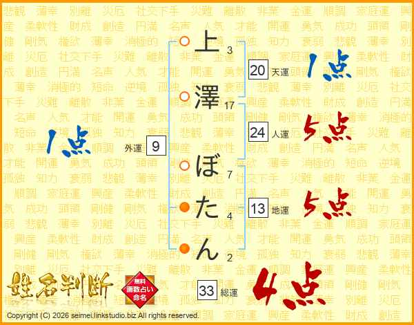 上澤ぼたんさんの総運は33画の4点!