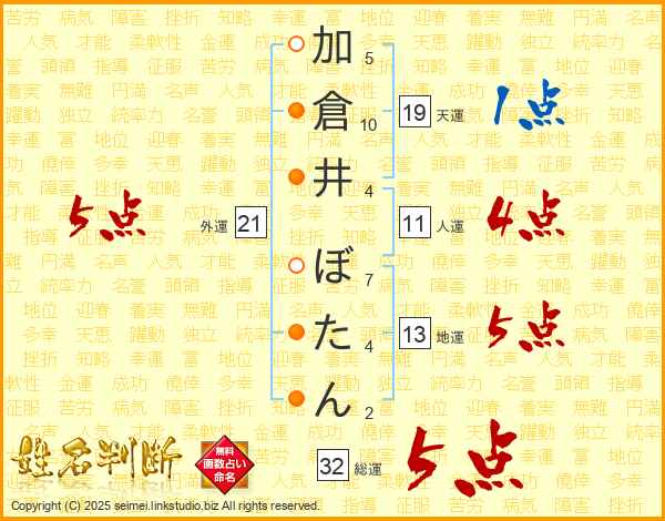 加倉井ぼたんさんの外運は21画の5点!