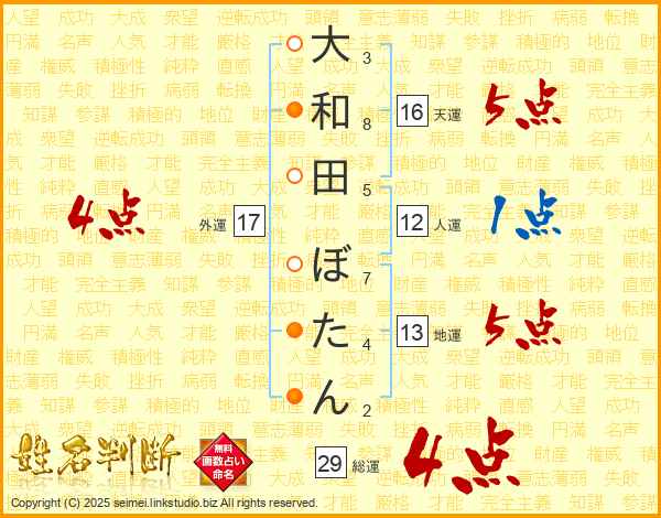 大和田ぼたんさんの地運は13画の5点!