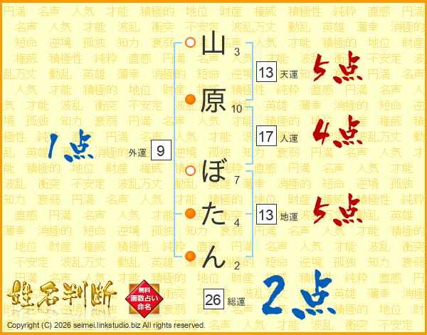 山原ぼたんさんの総運は26画の2点!