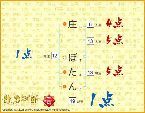 庄ぼたんさんの人運は13画の5点!