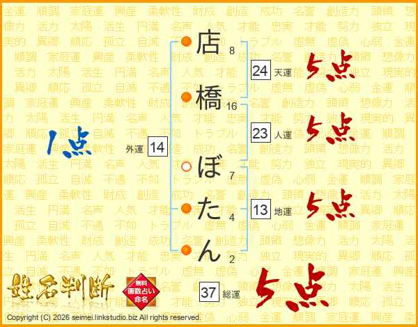 店橋ぼたんさんの総運は37画の5点!