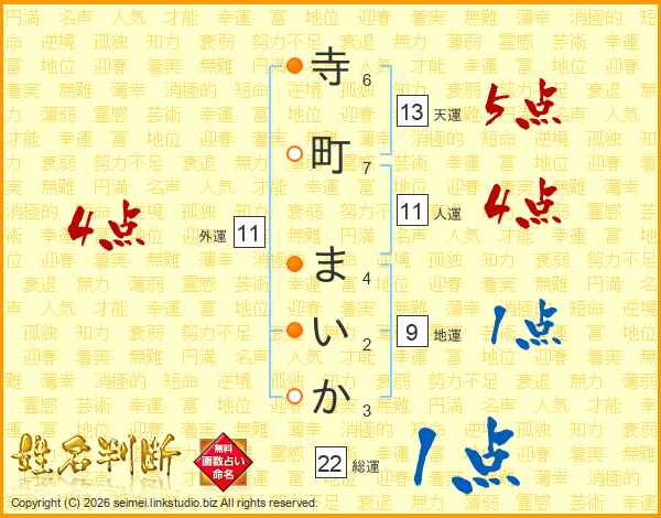 寺町まいかさんの総運は22画の1点!