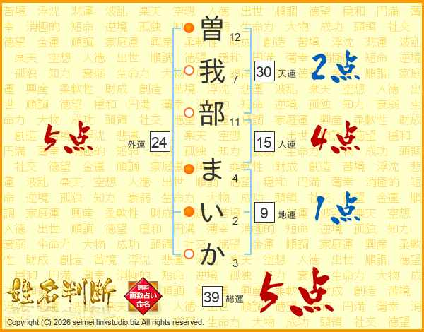 曽我部まいかさんの総運は39画の5点!