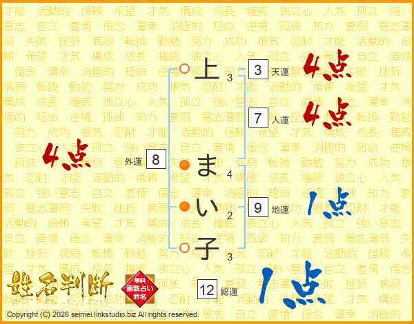上まい子さんの総運は12画の1点!