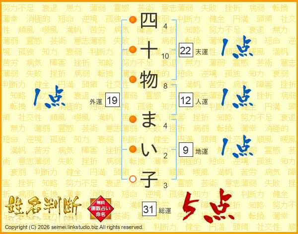 四十物まい子さんの総運は31画の5点!