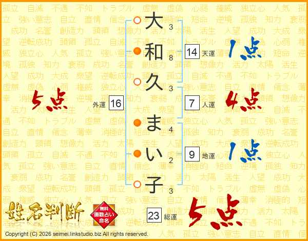 大和久まい子さんの外運は16画の5点!