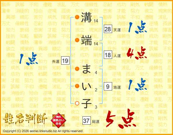 溝(14画)端(14画) ま(4画)い(2画)子(3画)
