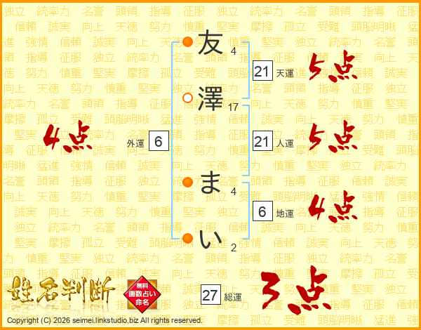 友澤まいさんの総運は27画の3点!
