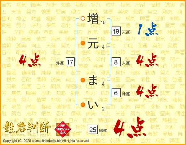 増元まいさんの総運は25画の4点!