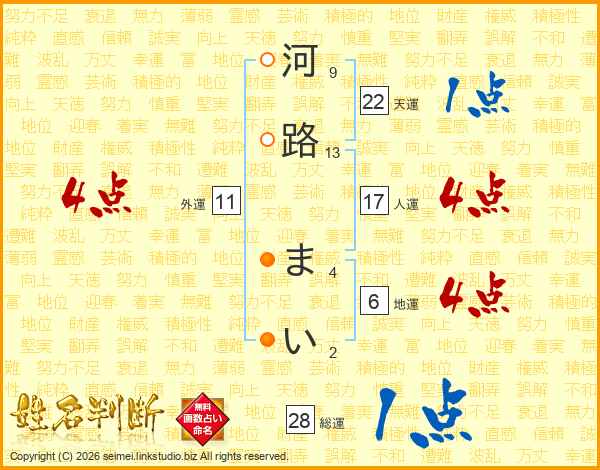 河路まいさんの総運は28画の1点!