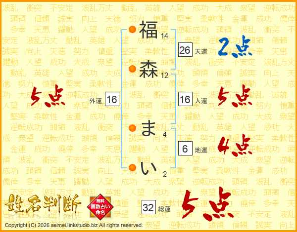 福(14画)森(12画) ま(4画)い(2画)