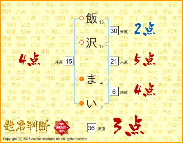 飯沢まいさんの総運は36画の3点!