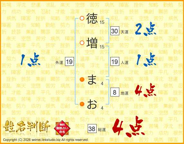 徳増まおさんの総運は38画の4点!