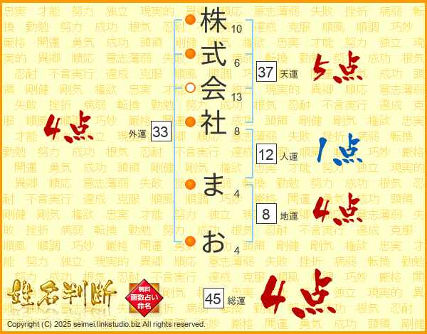 株式会社まおさんの総運は45画の4点!