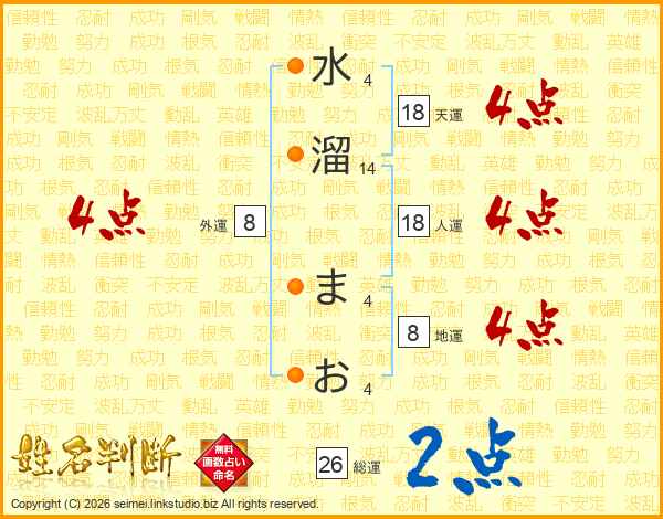 水溜まおさんの総運は26画の2点!