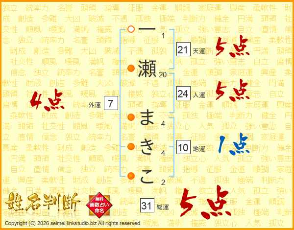 一瀬まきこさんの総運は31画の5点!
