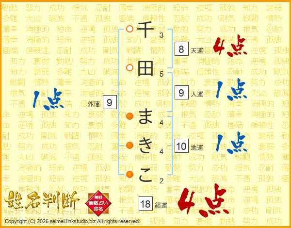 千(3画)田(5画) ま(4画)き(4画)こ(2画)
