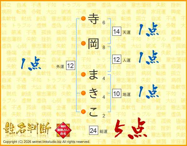 寺岡まきこさんの天運は14画の1点!