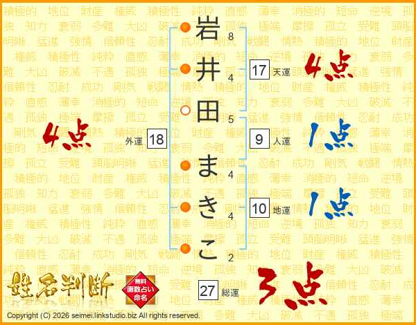 岩井田まきこさんの総運は27画の3点!