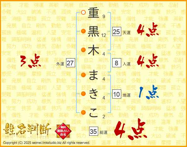 重黒木まきこさんの天運は25画の4点!