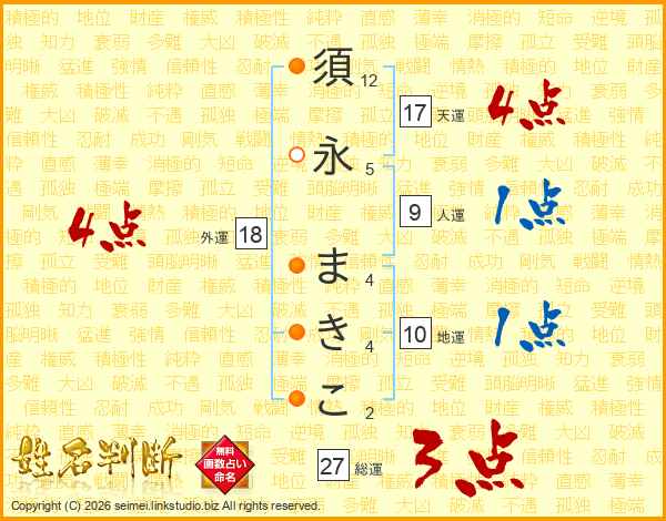 須永まきこさんの総運は27画の3点!