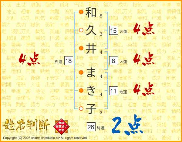 和久井まき子さんの総運は26画の2点!