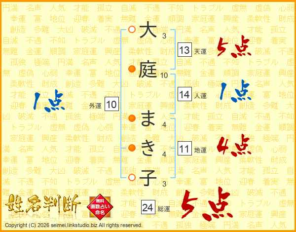 大庭まき子さんの人運は14画の1点!
