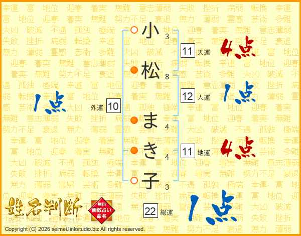 小(3画)松(8画) ま(4画)き(4画)子(3画)